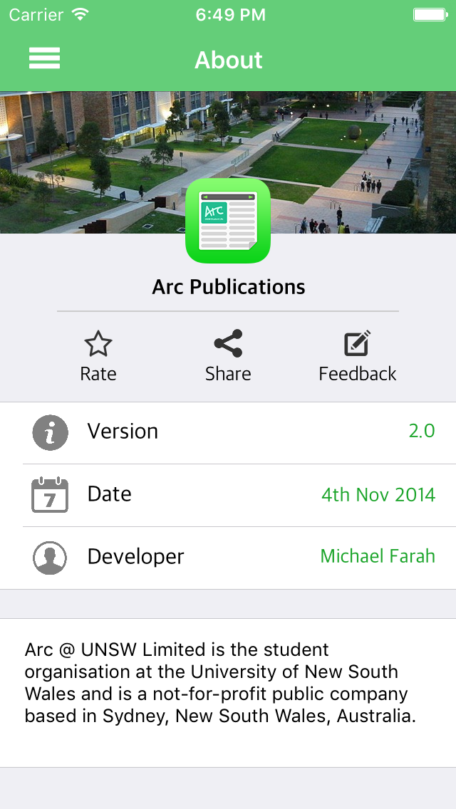An iPhone/iPad app for UNSW Arc! The app is primarily used to connect Arc to Students, No more hunting around UNSW to find out what’s on (there’s heaps). This bad boy gives you campus news, uni event info and the latest copies (plus the old ones) of Blitz and Tharunka.