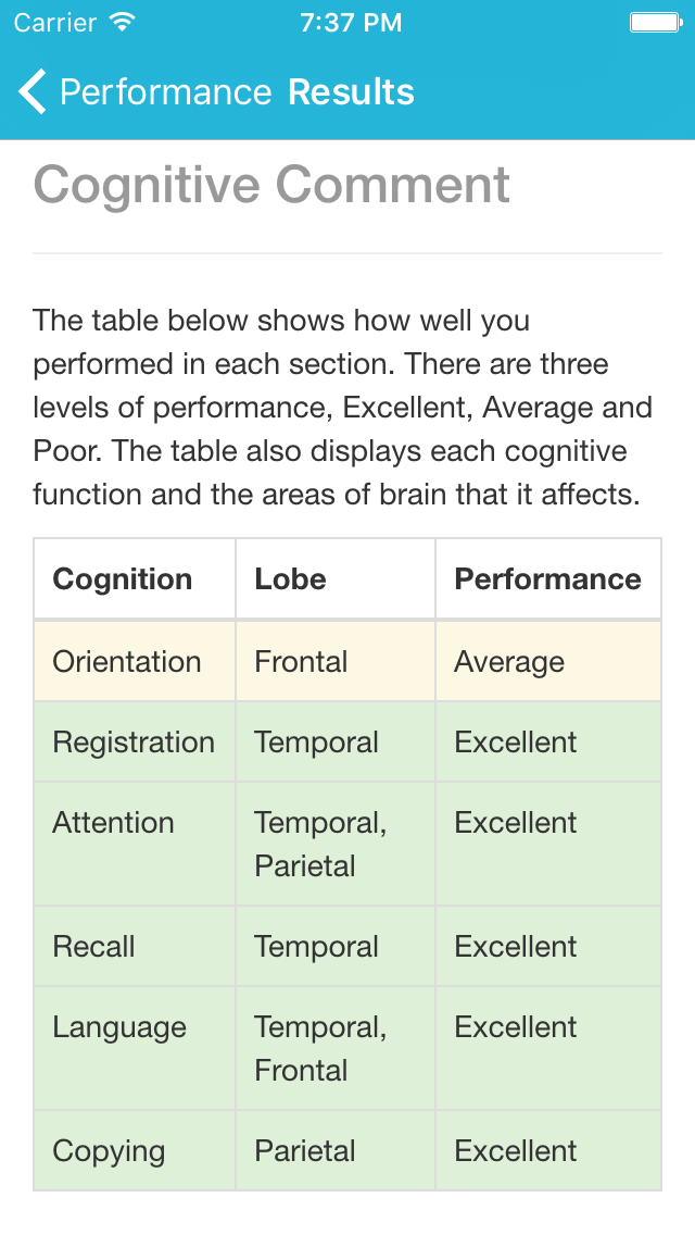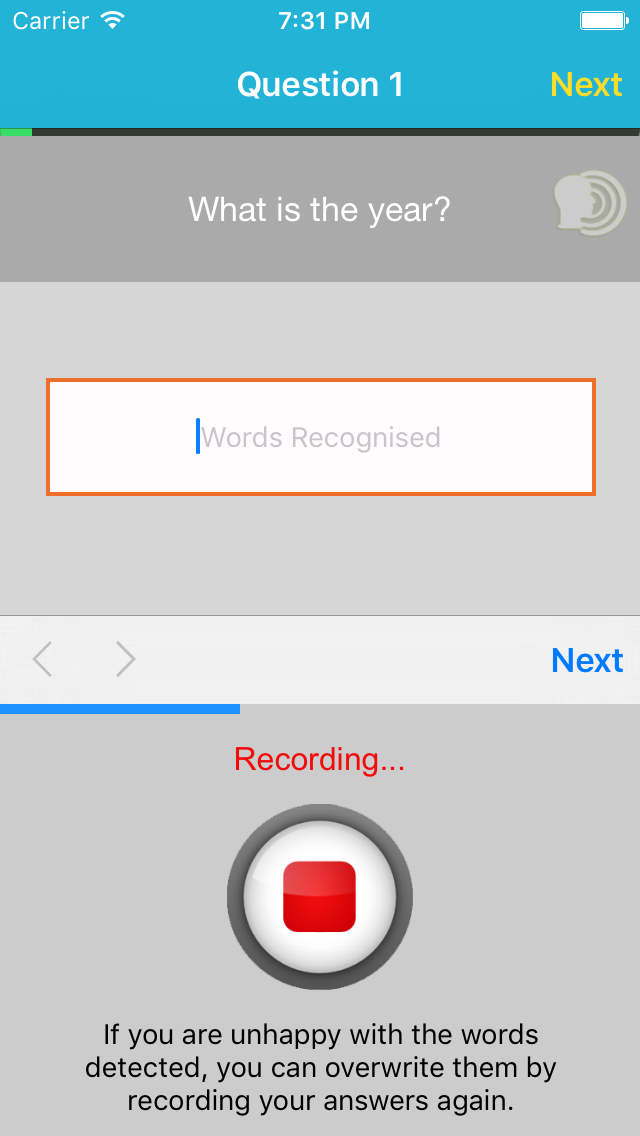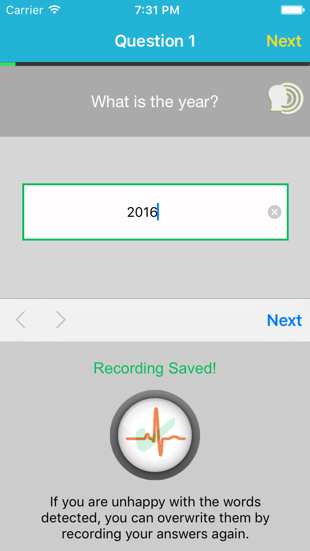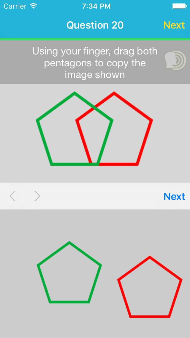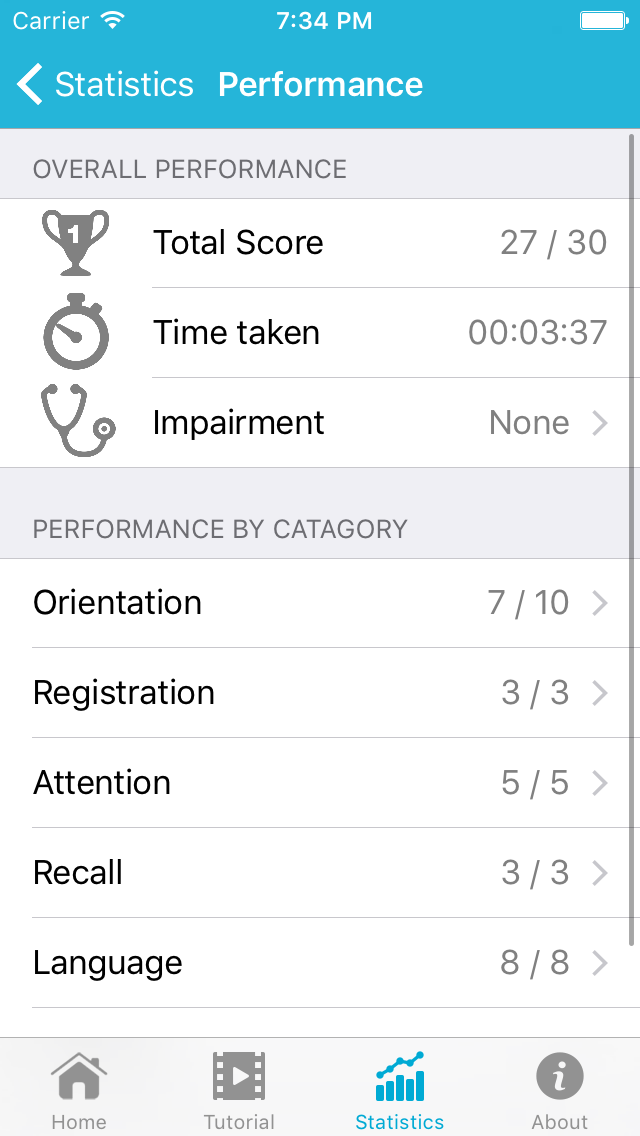 An iPhone Application for assessment of cognitive impairment (Final Thesis Project). This app aims to support the Mini Mental State Examinaiton (MMSE) used by doctors to determine if a patient has some sort of cognitive impairment. It looks at mapping some of the traditional tests into more automated types of tests without losing integrity.